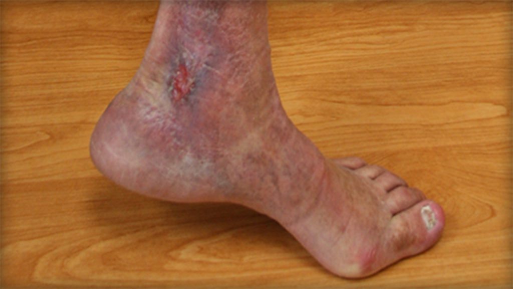 More than 80 percent of leg ulcers are caused by venous disease.9 When the veins in your legs are not working efficiently to carry blood back to the heart, the valves have become damaged and blood flows the wrong way. This back-up of fluid causes blood to pool in the leg and builds increased pressure on the vein walls. This condition can lead to skin damage and non-healing wounds. Venous wounds develop above the ankle when the blood pools in the ankles. The leaky veins result in pooling of inflammatory substances in the blood, which in turn irritate the skin chronically and lead to wounds.